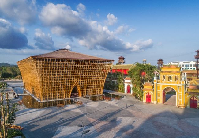 Công trình từ 32.000 cây tre cao 14,4m tượng trưng văn hóa Việt. Ba biểu tượng trống đồng, cây tre và bông sen hòa quyện. Đây là kiệt tác kiến trúc độc đáo thu hút du khách.
