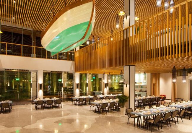 Hệ thống nhà hàng trong khách sạn Vinpearl phục vụ món Việt và quốc tế. Buffet 5 sao với thực đơn đa dạng, đầu bếp chuyên nghiệp. Không gian sang trọng, phục vụ chu đáo từng chi tiết.