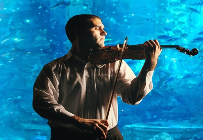 Một đặc quyền dành riêng cho những khách hàng dùng bữa trong khung giờ từ 12:00 đến 14:00 chính là sự xuất hiện của các nghệ sĩ biểu diễn. Trong không gian sâu thẳm của đại dương, những bản nhạc violin du dương sẽ được tấu lên trực tiếp, tạo nên một bầu không khí vô cùng lãng mạn. Âm thanh trong trẻo của tiếng đàn hòa cùng hình ảnh đàn cá bơi lội sẽ khiến bữa ăn của bạn trở nên thăng hoa hơn bao giờ hết.