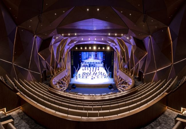 Bước qua lớp vỏ “chiếc đó”, khán giả sẽ thực sự choáng ngợp trước một trung tâm văn hóa nghệ thuật hiện đại bậc nhất. Nhà hát được trang bị khán đài với 536 chỗ ngồi, được thiết kế với góc nhìn tối ưu để mọi vị trí đều có thể quan sát sân khấu rõ nét. Hệ thống cơ khí và trang thiết bị sân khấu tại đây đạt chuẩn quốc tế, cho phép thực hiện những màn trình diễn phức tạp mà hiếm nơi nào ở Việt Nam có thể đáp ứng được.
