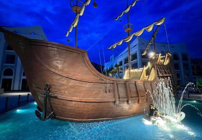 Ngay từ lối vào, bạn sẽ bị thu hút bởi những chú chim hồng hạc khổng lồ cao tới 5-6m, tạo nên một phông nền vô cùng ấn tượng. Dãy nhà mang phong cách Caribbean với những tông màu cam, hồng, xanh rực rỡ sẽ là nơi lý tưởng để lưu giữ những bức hình năng động và trẻ trung.
