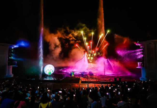Pha biểu diễn Fly by Waterjet do các diễn viên đóng thế thực hiện với pháo hoa bắn ra từ cơ thể trong lúc lướt trên mặt nước – tạo nên hình ảnh đôi cánh bướm lung linh và huyền ảo giữa màn đêm biển cả.