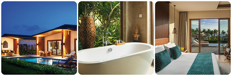 Biệt thự hồ bơi 3 phòng ngủ hướng biển (307m²) – Không gian nghỉ dưỡng lý tưởng cho gia đình hoặc nhóm bạn, với hồ bơi và sân hiên riêng, ba phòng ngủ (hai giường King, một phòng hai giường đôi), mỗi phòng đều có phòng tắm riêng với bồn tắm, vòi sen và toilet riêng. Biệt thự có phòng khách, phòng ăn riêng biệt, bếp đầy đủ tiện nghi với minibar, máy pha cà phê espresso, máy giặt, tủ lạnh và ấm đun nước. Thư giãn và giải trí với 4 TV LED cùng các kênh quốc tế và địa phương.