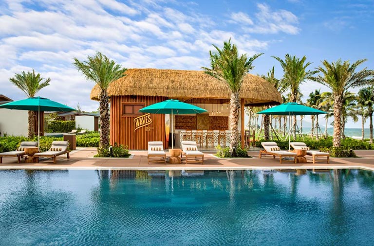 Ngay bên cạnh hồ bơi xanh mát, nơi làn gió biển mơn man, WAVES Bar là điểm dừng chân lý tưởng để bạn tận hưởng trọn vẹn khoảnh khắc thư giãn. Tại đây, bạn có thể nhâm nhi những món ăn nhẹ hấp dẫn, thưởng thức những ly cocktail độc đáo hay những ly sinh tố mát lạnh, lắng nghe tiếng sóng vỗ rì rào và cảm nhận hơi thở của biển cả.