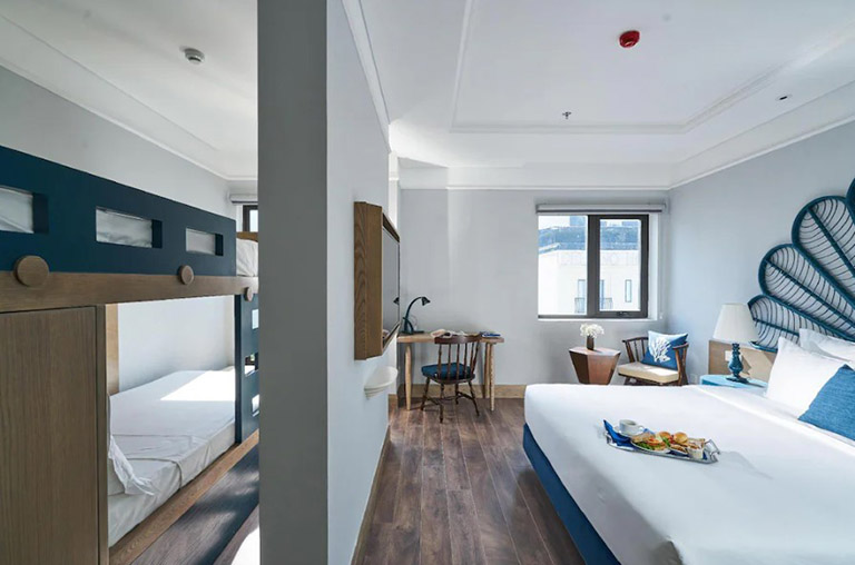 Phòng Deluxe Family tại Sofia Suite là lựa chọn tuyệt vời cho những ai đi du lịch cùng gia đình hoặc bạn bè. Với diện tích rộng rãi lên tới 40m2 và tầm nhìn hướng thành phố, căn phòng được thiết kế để mang đến sự thoải mái tối đa cho cả người lớn và trẻ nhỏ. Phòng được trang bị đầy đủ tiện nghi với 1 giường đôi lớn và 2 giường đơn, cùng với đó là chiếc giường tầng độc đáo, mang lại sự tiện nghi và niềm vui cho các thành viên nhỏ tuổi.