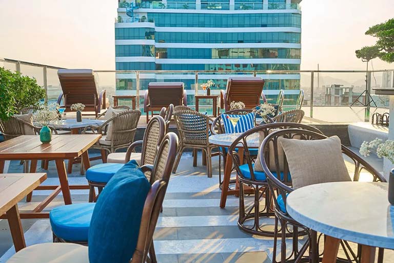 Nằm kiêu hãnh trên tầng thượng của khách sạn Sofiana Mỹ Khê, Marine Sky Bar là điểm đến lý tưởng cho những ai muốn tìm một góc bình yên giữa lòng thành phố sôi động. Nơi đây là sự giao hòa tuyệt vời giữa bầu trời lộng gió, mặt biển xanh biếc và nhịp sống Đà Nẵng rì rào phía dưới. Không gian được thiết kế để bạn có thể tận hưởng trọn vẹn những khoảnh khắc chậm rãi, nơi ánh chiều tà phủ bóng lãng mạn lên ly cocktail mát lạnh và những giai điệu du dương len lỏi vào từng câu chuyện.