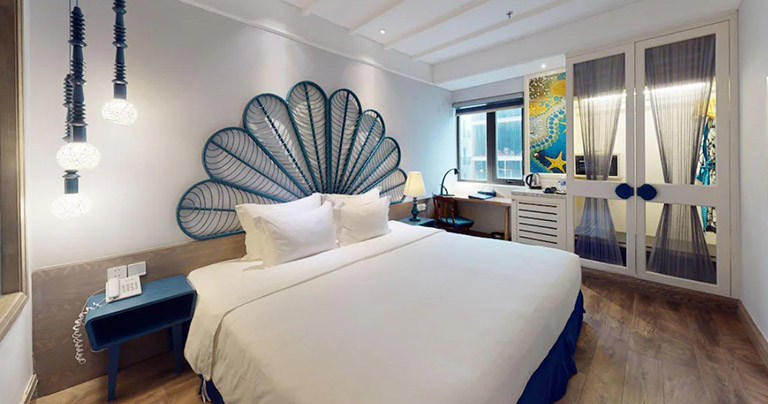 Nằm ngay trung tâm, phòng Deluxe Twin City View mang đến cho bạn cơ hội ngắm nhìn thành phố Đà Nẵng từ trên cao. Chỉ cách bãi biển Mỹ Khê 150m, bạn có thể dễ dàng tận hưởng cả không khí đô thị lẫn sự trong lành của biển.