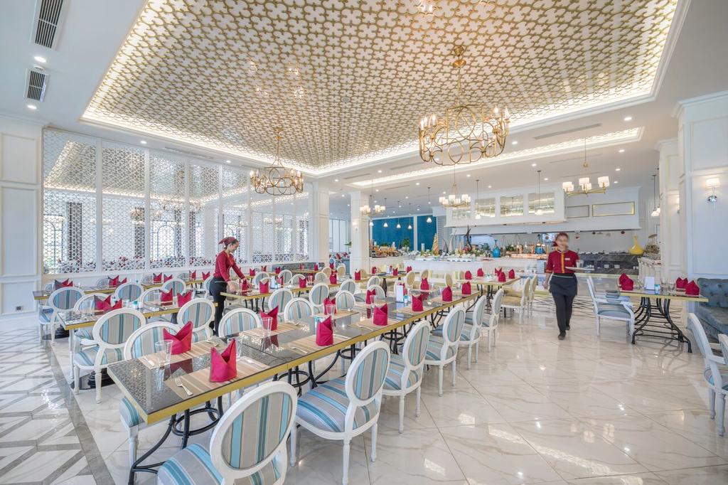 – Phục vụ buffet hoành tráng đa dạng và nước trái cây mang hơi mát nhiệt đới… Tại đây có 2 nhà hàng, trung tâm thể dục và phòng xông hơi khô.